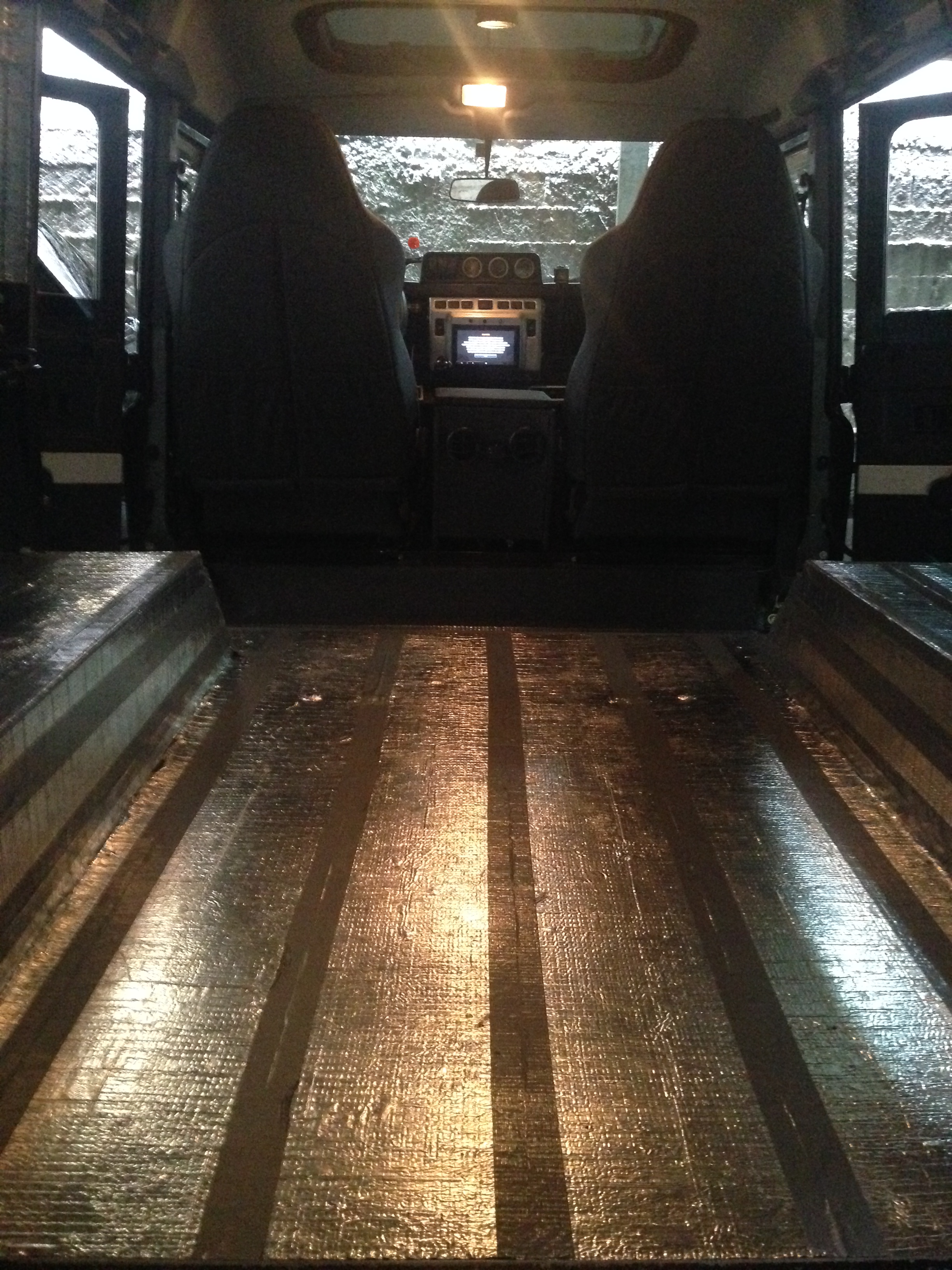 Por influência do Sérgio do Projeto Mundo Cão (www.projetomundocao.com.br), que tinha feito o isolamento da sua Mundrunga, lá fui eu tentar fazer o mesmo com a minha Defender. Como o interior tinha sido praticamente todo desmontado, o trabalho ficou bem mais fácil, mas mesmo assim não escapei de ter que desmontar bancos, retirar parafusos e guarnições, e lavar o carro (literalmente) por dentro com água e sabão, isso sem mencionar uns bons dias gastos colando a manta asfáltica.