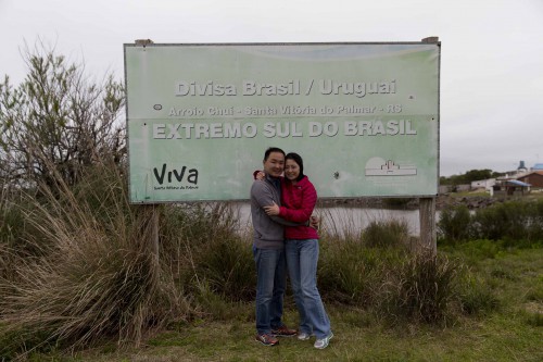 Hoje (20/09/14) estamos inaugurando uma nova categoria no tópico América do Sul (é dia de colar uma nova bandeira). Depois de 21 dias muito bem aproveitados no Brasil, deixamos nosso país pela Cidade mais ao Sul – o Chuí, que até hoje só conhecíamos dos livros de geografia e de relatos de outros viajantes. Pena que não existe uma placa em melhor estado para marcar o ponto mais ao Sul do território brasileiro.
