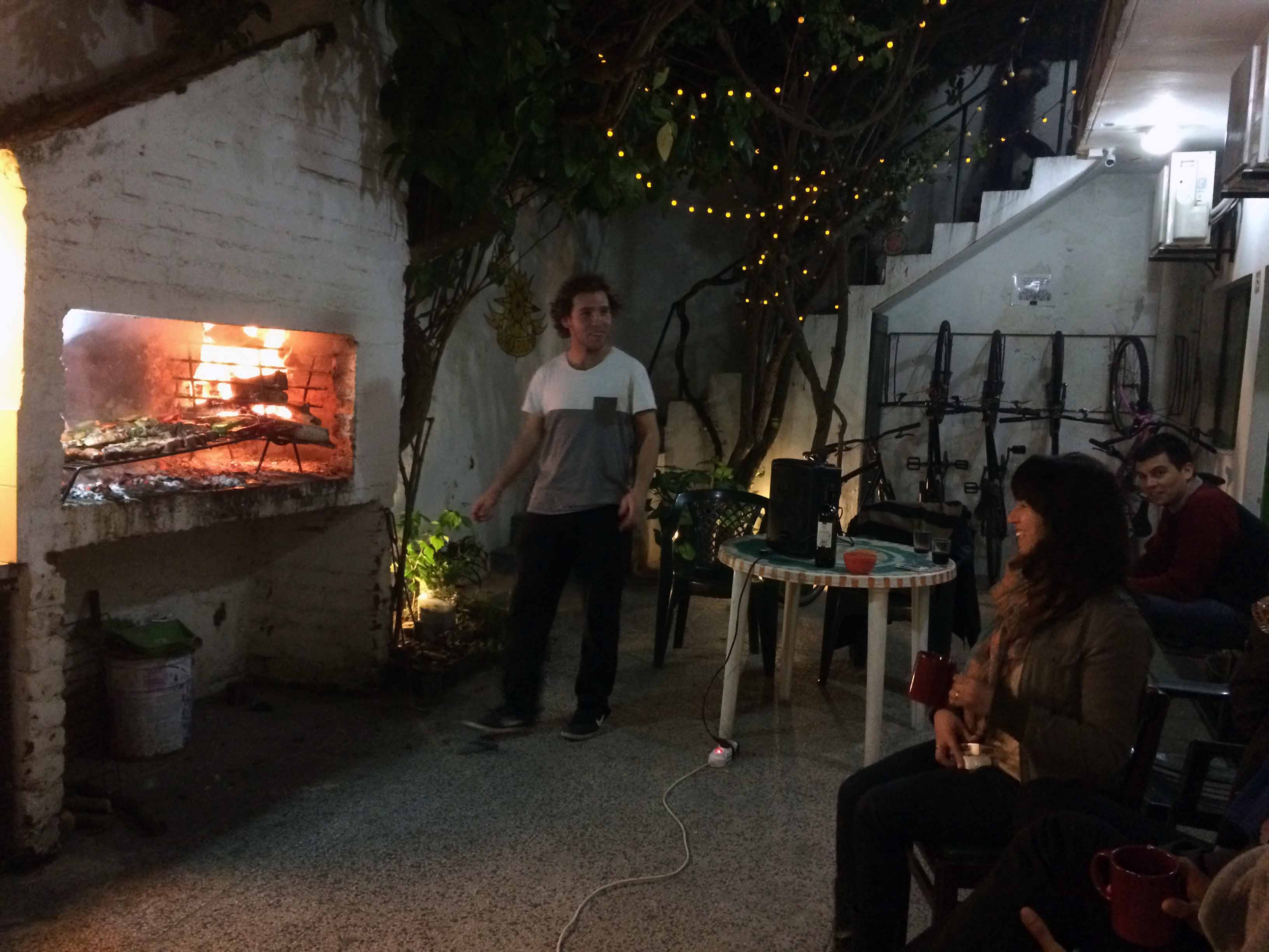 Nossa última noite no Uruguai (26/09/14) foi muito animada! Participamos de um animado churrasco com o pessoal do hostel de Colonia del Sacramento e pudemos conversar com pessoas de diferentes partes do mundo (irlandeses, chilenos, britânicos, brasileiros e uruguaios). Sem dúvida essa é a maior vantagem de ficar em um hostel.