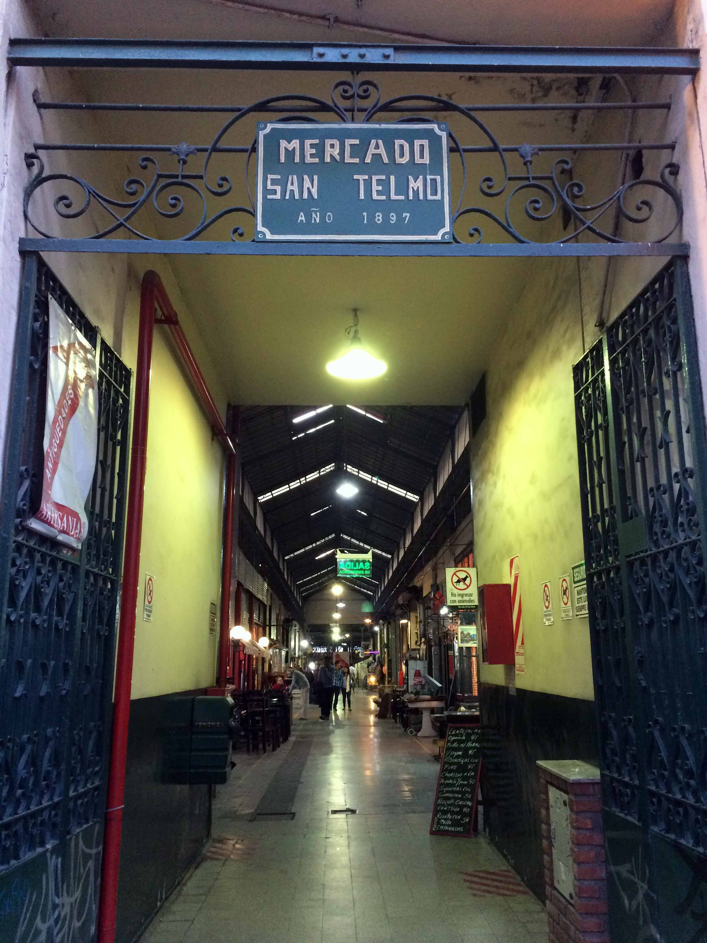 Nós ficamos em um ótimo hostel (America del Sur) em San Telmo. Com uma área pouco maior que 1 km quadrado, esse é um do menores e mais antigos bairros da cidade. Algumas ruas são de paralelepípedo e ainda existem muitas casas e outras construções antigas. No centro do bairro fica a Plaza Dorrego onde acontece, aos domingos, a Feria de San Telmo, que é um passeio obrigatório para quem passa um fim de semana em Buenos Aires. Pena que hoje estava chovendo, então não conseguimos andar com calma pela feirinha.