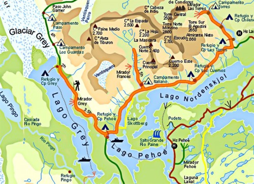 O Parque Nacional Torres del Paine leva o nome dos 3 pilares de granito que se erguem quase 3.000m acima da estepe patagônica. O parque de 1.810 km2 foi criado em 1959 a partir de uma estância (fazenda) e desde 1978 faz parte da Reserva da Biosfera da UNESCO. Infelizmente houve no Parque 2 grandes incêndios, o primeiro em 2005, causado por um fogareiro de camping; e o segundo em 2011, causado pela queima de lixo em um acampamento (segundo o culpado). Esses incêndios queimaram uma boa parte da vegetação, que até hoje não se recuperou – uma pena!