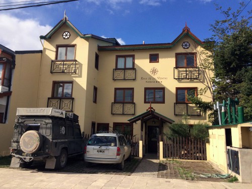 Hostería Rosa de Los Vientos (http://rosadelosvientos.com.ar). Ambiente familiar e staff muito atencioso (obrigado Carlos). Essa pousada fica a cerca de 5 quadras da Rua San Martin (rua principal de comercio de Ushuaia), mas para chegar até a pousada do centro é uma longa subida (fizemos esse percurso a pé várias vezes). O quarto é amplo, arejado e limpo, mas um pouco barulhento. A pousada tem café da manhã, estacionamento e wi-fi, mas a conexão estava lenta (por isso não atualizamos os posts).