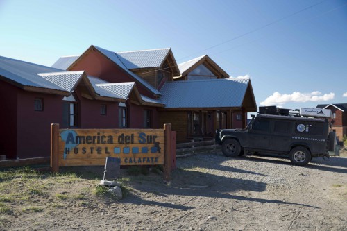 Hostel América del Sur (http://www.americahostel.com.ar). O hostel fica em uma rua de rípio um pouco afastada do centro de El Calafate, mas conta com um amplo ambiente comum. O wi-fi é lento, principalmente no final da tarde, quando estão todos sentados no lobby. A cozinha é pequena e pouco equipada e o quarto barulhento. Não tem estacionamento fechado, mas a rua é tranquila.