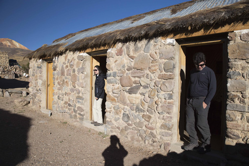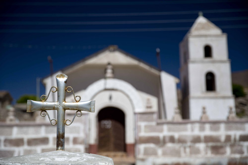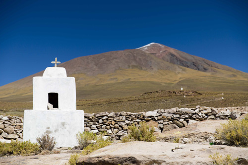 Ainda em San Pedro de Quemes vimos uma trilha marcada por totens brancos até o vulcão próximo ao povoado. Todos os anos os locais sobem até a cratera do vulcão e sacrificam lhamas como uma oferenda a terra.