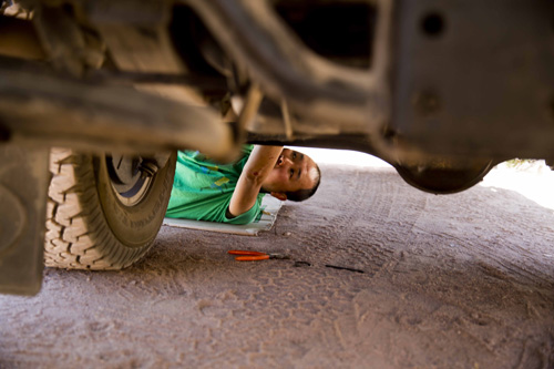 Dessa vez escolhemos um camping para poder arrumar nossas coisas e limpar o carro. Também aproveitamos a tranquilidade do camping para resolver um probleminha com o respiro do diferencial traseiro, que estava entupido e causava um pequeno vazamento de óleo.