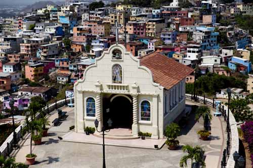 Caminhamos pelo bairro de Las Peñas, que reúne alguns ateliers de artistas de Guayaquil em casas com cerca de 400 anos totalmente restauradas e preservadas, e é o ponto de acesso ao Farol do Cerro Santa Ana; e