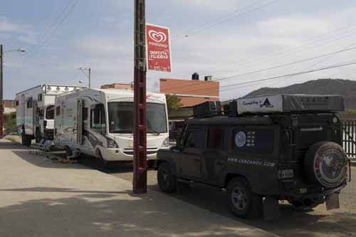 No pouco tempo que passamos juntos (em sua sala de estar), demos muita risada, vimos as crianças surfar, atualizamos os acontecimentos dos últimos dias no Peru e conhecemos outras pessoas. O ponto de ônibus acabou se transformando em um ponto de encontro para turistas e locais que paravam pela curiosidade de ver o trailer do Marrocos e um gigantesco caminhão da França.