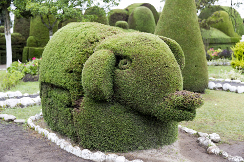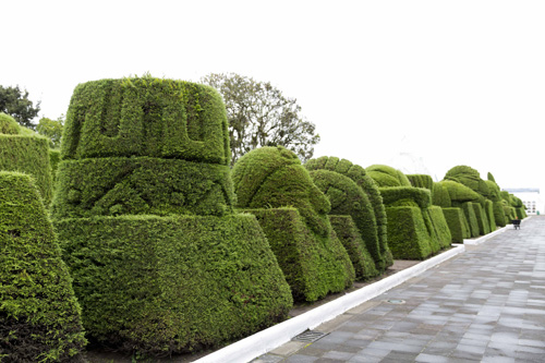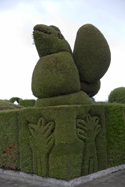 O cemitério em si não é muito bonito, uma mistura de lápides com gaveteiros verticais, mas o que chama atenção são as diversas figuras geométricas, labirintos, animais, anjos e pessoas todas caprichosamente podadas. Parece até que fomos transportados para o filme Alice no País das Maravilhas ou Edward Mãos de Tesoura. Que jeito incrível de fechar a passagem por esse país maravilhoso.
