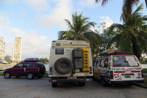 Também conhecemos o Roy e a Michelle do Mundo por Terra (http://www.mundoporterra.com.br | http://www.facebook.com/MundoPorTerraUmaFascinanteVoltaAoMundoDeCarro?fref=ts), que estão em sua segunda volta ao mundo a bordo de uma Land Rover Defender 130 modificada chamada Lobo da Estrada.