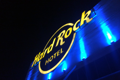 Hard Rock Hotel Panama Megapolis (http://www.hrhpanamamegapolis.com). Um hotel muito grande com o conceito do Hard Rock. Conta com diversos bares (um com um palco para shows), restaurantes (buffet e a la carte), loja etc. etc. Estava muito cheio, mas não incomodou. O hotel fica em um complexo com um shopping e próximo a outros shopping muito bom. Os taxis do hotel são absurdamente caros e para pegar um taxi comum só indo até a rua.
