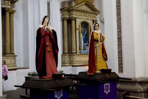 Outra curiosidade sobre as igrejas de Antigua: apesar da riqueza de detalhes do exterior, o interior é bastante simples. Essa discrepância é resultado da mudança da capital para a atual Cidade da Guatemala; quando a coroa espanhola determinou a mudança da capital, apesar dos protestos, não restou alternativa à igreja católica senão retirar todas as obras de arte, adornos etc e levá-las para a nova capital.