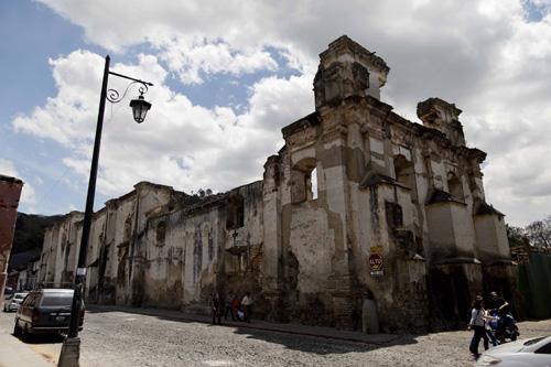 No dia 17/03/15 fizemos um walking tour por Antigua e pudemos ver várias igrejas e conventos, além de casas e outras construções históricas que hoje são hotéis e restaurantes. Muitas construções históricas sofreram danos irreparáveis ao longo dos anos em razão dos constantes terremotos que ocorrem na Guatemala, mas todas as ruínas são tombadas e preservadas.