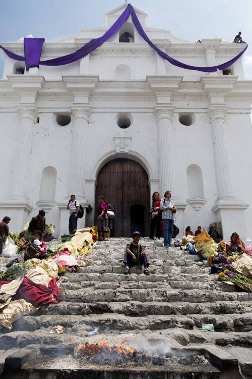 Na porta da igreja ficam diversos K’iche’ (líderes espirituais Mayas) queimando incenso e consultando as pessoas que ingressam na igreja sobre o propósito de suas visitas. Apesar de ser uma igreja católica, o local é utilizado até hoje para cerimônias Mayas que incluem velas e sacrifícios de aves. Cada um dos 18 degraus da escada que leva até a igreja representa um mês do calendário Maya.