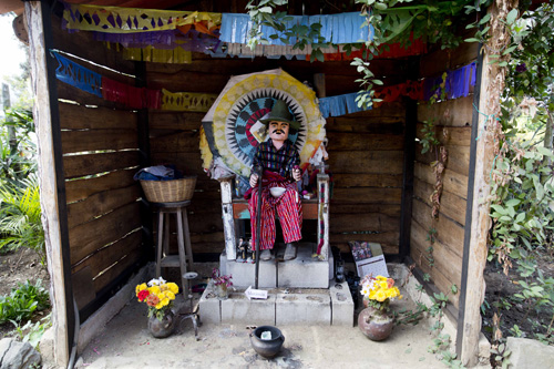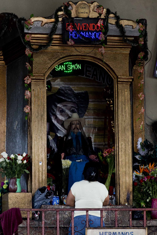 Voltando para Antigua ainda visitamos o templo de San Simón, que como dissemos acima, é um santo da crença popular venerado pelos Mayas e por populares. Muitas pessoas pedem saúde, prosperidade nos negócios ou mesmo que os ajudem a chegar aos EUA (nós vimos uma placa de agradecimento por esse feito) e em troca oferecem a San Simón cigarros, bebida, charutos e dinheiro.