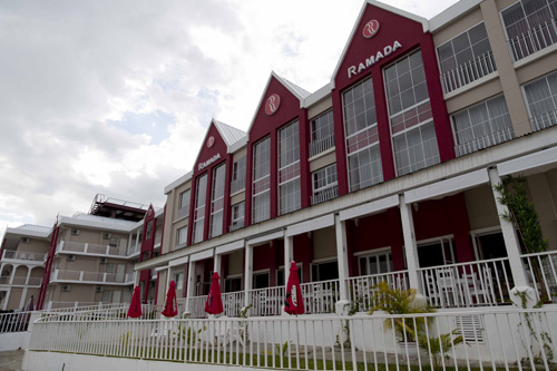 Ramada Isla de Flores (http://www.ramada.com/hotels/guatemala/isla-de-flores/ramada-tikal-isla-de-flores/hotel-overview). Um hotel muito bom situado a beira do lago. Estacionamento fechado, quartos com ar condicionado, 2 piscinas. O wifi só estava funcionando na recepção.