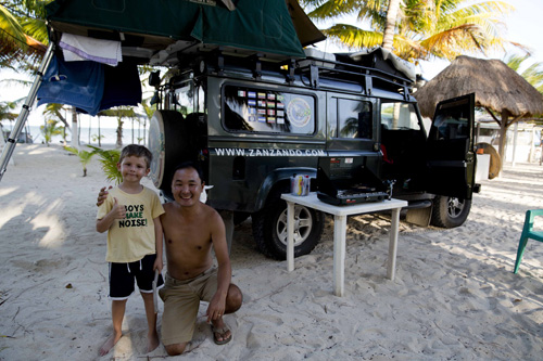Como não havia mais ninguém, ficamos bem à vontade, cozinhamos, relaxamos e até conhecemos o José Luis de 6 anos, que entende tudo de carros 4×4. Sua família tem uma cabana muito simpática vizinha ao camping, mas eles vivem em Mérida, a cerca de 320 quilômetros de Cancun. A Rebeca (mãe do José Luis) nos ofereceu uma deliciosa salada feita com maionese, cebola e pedaços de garoupa desfiada e a noite passamos mais algumas horas com eles jogando conversa fora.
