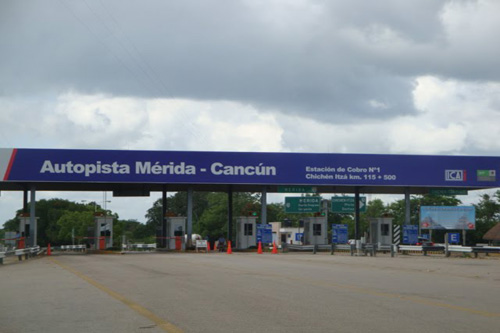 Essa estrada é conhecida com a “Autopista del Mayab” e é toda de pista dupla, mas o custo dos 2 pedágios é altíssimo. Para rodar pouco mais de 300 km, pagamos quase 28 USD; e pensar que tem gente que acha caro o pedágio da Rodovia dos Imigrantes.