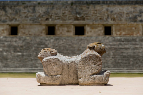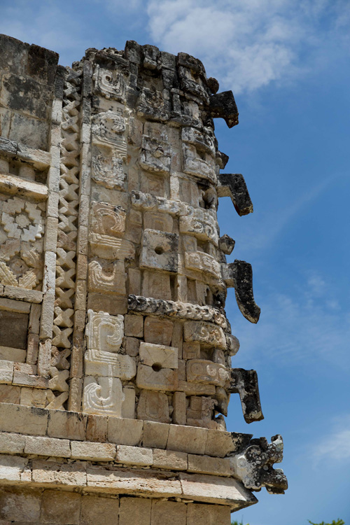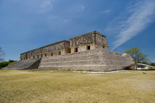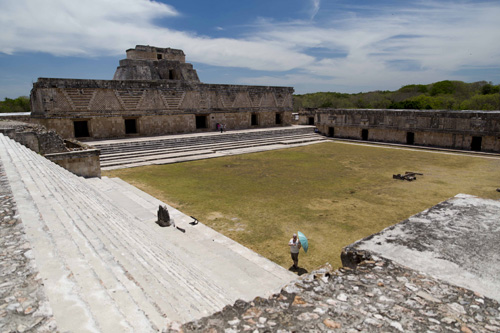 Suas construções seguem o estilo Puuc, que se caracteriza por muros lisos na parte inferior e com frisos e ornamentos Mayas na parte superior. Os maiores destaques são o Templo do Adivinho, com cinco níveis e formato elíptico, e o Palácio do Governador, que ocupa uma área de mais de 1.200 metros quadrados.