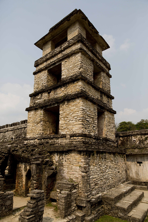Gostamos muito da condição das ruínas. A impressão é que a intervenção feita pelos arqueólogos no processo de escavação e restauração foi menor do que o que vimos em Uxmal. A estrutura mais curiosa de Palenque é uma torre situada no Palácio; os arqueólogos acreditam que era utilizada pelos governantes para rituais e observações astronômicas.