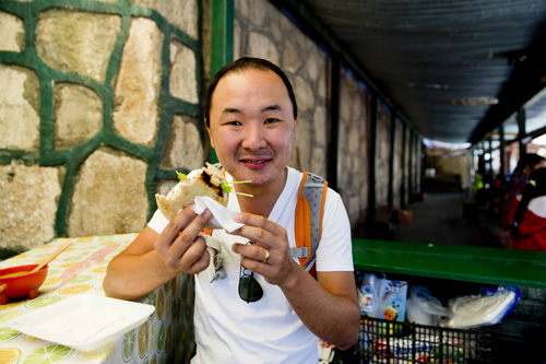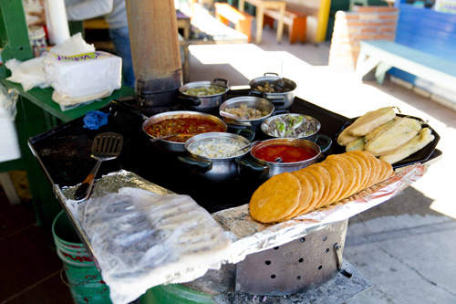 A manhã estava tão agradável que até paramos para comer uma gordita, que é uma tortilha recheada com queijo, carne, cebola e molho picante – muito bom! A tarde pegamos novamente o trem e seguimos até Creel, que está a duas horas de distância de Posada Barrancas.