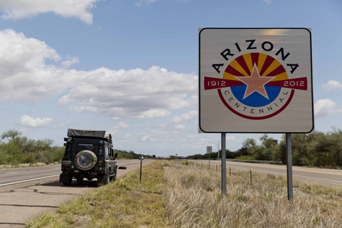 Entramos nos EUA pelo estado do Arizona, na Cidade de Nogales, que faz fronteira com a Cidade de Heróica Nogales no México. Existem dois pontos em Heróica Nogales para atravessar a fronteira, uma no centro da cidade (31.332845, -110.942305), que normalmente é mais movimentada, e outra fora da cidade chamada Nogales-Mariposa (31.332289, -110.964977), que é bem mais tranquila.