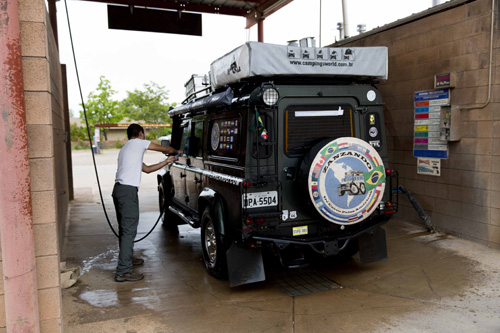 De Kanab seguimos para o Bryce Canyon National Park no dia 21/05/15, que está localizado a cerca de 130 quilômetros de distância por uma estrada muito bonita. Como o trecho seria curto, aproveitamos para dar um merecido banho no Godzilla e, como tudo aqui nos EUA, você mesmo faz tudo e coloca as moedas para ligar a água; tudo muito simples e prático.