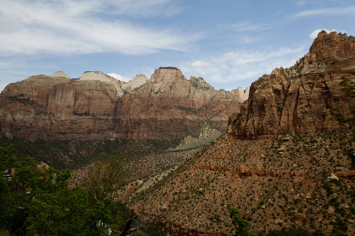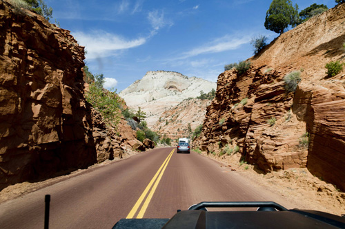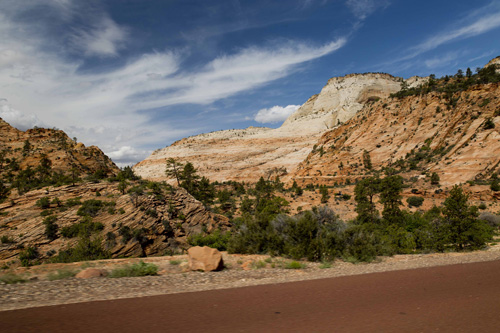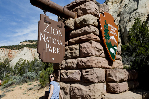Passamos a noite no camping do Bryce Canyon National Park e, apesar do frio que fez (-1 de madrugada), foi muito bom. Na manhã seguinte (22/05/15) fomos visitar o último parque de cânions dessa perna da viagem, o Zion National Park. Diferentemente do Grand Canyon e do Bryce National Park, o Zion tem menos áreas onde se pode estacionar o carro e caminhar. Por ser sexta-feira, o parque estava lotado e acabamos apenas fazendo um passeio de carro pelo parque, mas mesmo assim foi muito legal.