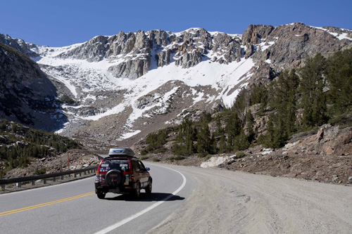 A novidade já começou pela estrada que pegamos, a Highway 120, também conhecida como Tioga Road, que cruza a Sierra Nevada e liga a pitoresca Highway 395 ao parque. Essa estrada fecha nos meses mais frios, entre novembro e abril, o que é uma pena pois o visual é INCRÍVEL!