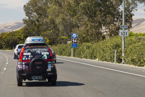 A paisagem é muito bonita, mas é apenas uma amostra do que veremos amanhã no trecho de San Luis Obispo a San Francisco, conhecido como Big Sur. No caminho cruzamos com nossos amigos e companheiros de viagem Amabry e Rosely do Vamos Pro Alasca (https://www.facebook.com/vamosproalasca) e é claro que paramos para fazer farofa e colocar a conversa em dia.