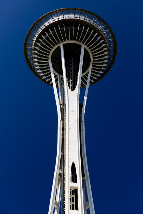 Nosso passeio por Seattle começou no Seattle Center, onde está localizada a torre Space Needle, que foi construída em 1962 para a Feira Mundial. A torre tem 184 metros de altura e na época de sua construção era a estrutura mais alta a oeste do Rio Mississipi. Hoje seus milhares de visitantes podem admirar a vista de Seattle do observatório localizado a 160 metros de altura.