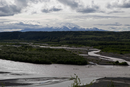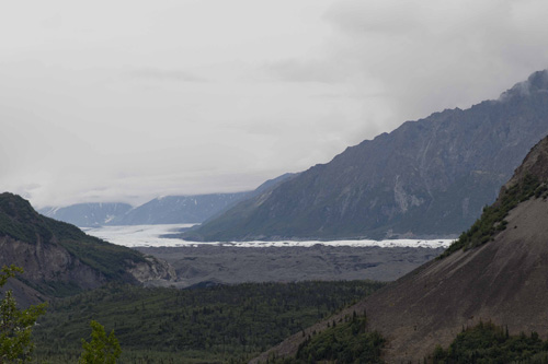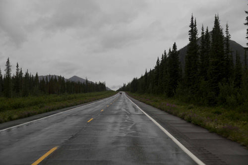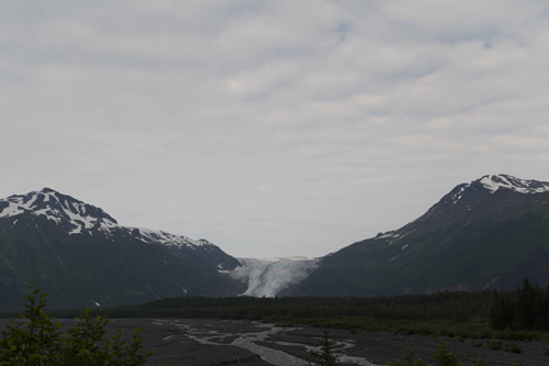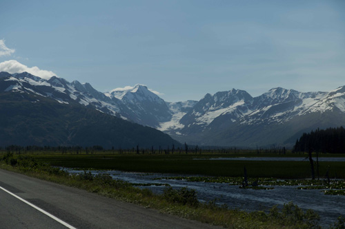 Nossos primeiros dias no Alasca foram debaixo de chuva. Assim que cruzamos a fronteira no dia 30/06/15 começou a chover e não parou até chegarmos a Anchorage no dia 01/07/15. É uma pena pois o caminho de Tok até Anchorage é lindo, cheio de montanhas e geleiras, mas mal conseguimos ver os picos cobertos de neve em razão do tempo.