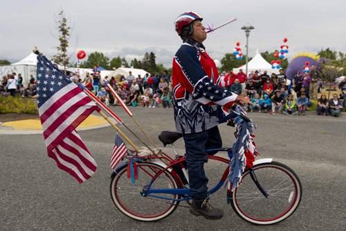 Voltando ao Dia da Independência, as comemorações no território comprado da Rússia em 1867 por 7.2 milhões de dólares, e reconhecido como estado norte americano apenas em 1959 foram bastante animadas. Logo de manhã seguimos para o Parque Delaney, que fica a poucas quadras do centro comercial de Anchorage e nos acomodamos para assistir a parada que aconteceria as 11h da manhã.