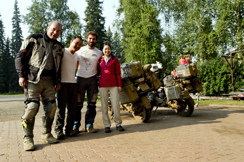No hotel que ficamos em Fairbanks conhecemos o Juliano Generali do Moto Atacama (http://motoatacamaentretenimento.com.br/blog) e seu pai Ricardo, que estavam voltando de Prudhoe Bay. O Juliano e seu irmão Eduardo viajaram de Itu, São Paulo a Prudhoe Bay, Alasca em pouco mais de 70 dias em duas motos BMW e embarcariam as motos de Anchorage para Buenos Aires, mas infelizmente quando estavam saindo de Prudhoe Bay o Eduardo sofreu uma queda que acabou antecipando seu retorno para o Brasil.