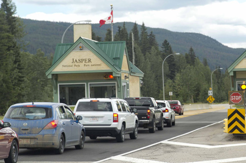 Na manhã seguinte (20/07/15) seguimos até Jasper, que fica dentro do parque de mesmo nome no Estado de Alberta. A estrada também muda da Yellowhead Highway para a Icefields Parkway, que corta os parques de Jasper e Banff e passa por algumas das mais impressionantes e bonitas geleiras canadenses. Como a cidade de Jasper está localizada dentro do parque, tivemos que pagar a entrada (19,60 CAN), mas vale a pena pois o caminho é muito bonito.