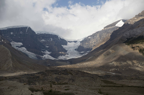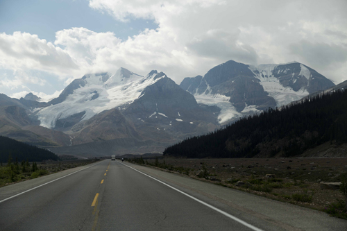 No dia 21/07/15 saímos de Jasper e continuamos sentido Sul pela Icefields Parkway. No caminho paramos na Geleira Athabasca que é uma das pontas dos campos de gelo de Colúmbia. Em 2009 já tínhamos passado nesse lugar e fizemos um passeio pela geleira a bordo de um ônibus modificado especialmente para andar sobre a geleira (muito legal!). Além desse passeio se pode fazer um tour a pé com guia pela geleira e, desde o ano passado, caminhar por uma passarela de vidro sobre o vale formado pelo recuo da geleira.