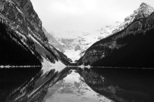 Em 2009 a impressão era de que tínhamos o lago só para nós (não havia ninguém), mas dessa vez havia ônibus de turismo, carros e pessoas para todos os lados. Mesmo assim a paisagem é muito bonita e vale o sacrifício de procurar um lugar para parar o carro etc. Quem sabe um dia não retornamos em outra época e ficamos hospedados no Fairmont. Abaixo colocamos uma foto do lago tirada em 2009 (em preto e branco) e outra tirada nessa visita.
