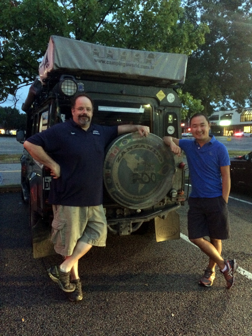 No dia 11/08/15 à noite estávamos saindo de um restaurante em Worcester (perto de Boston), quando um carro parou e o motorista elogiou o Godzilla. Era o Peter Janney, também conhecido como Baby Spice, um apaixonado de segunda geração por Defenders, proprietário de um excelente Defender 200 Tdi, e mecânico responsável por restaurações na oficina J.White’s Automotive (http://www.jwhitesautomotive.com) em Framingham.