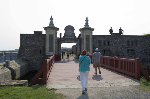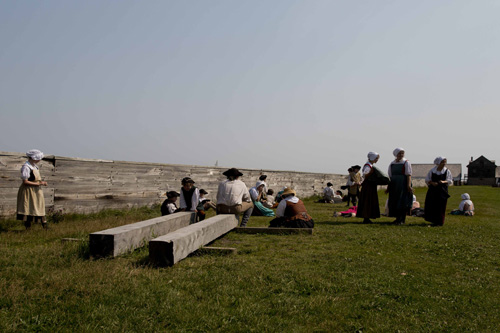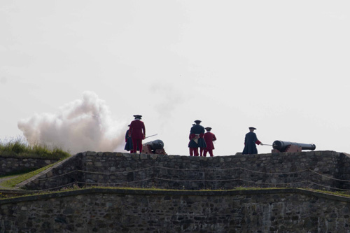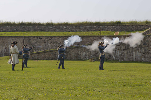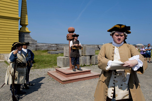 Em 1961 o Governo Canadense iniciou a reconstrução da cidade, que hoje conta com os principais prédios e parte da muralha que cercava a cidade. Para completar, muitas pessoas vestidas a caráter, inclusive crianças (que ainda estão de férias) circulam pela cidade e representam vários atos cotidianos. Também são realizadas apresentações com disparos de mosquetes e canhões, que para nós foi o ponto alto da visita a Louisbourg.