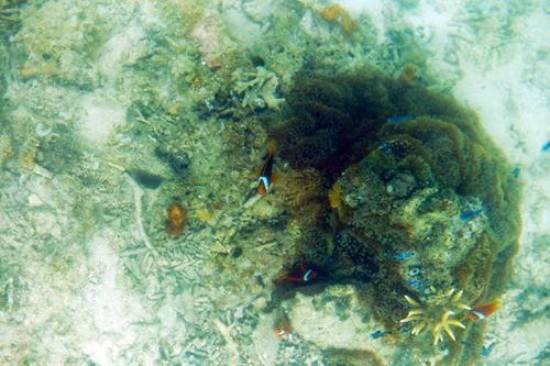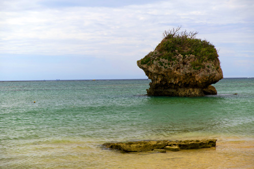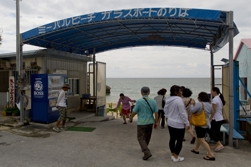 Saindo de Himeyuri a nossa guia Ai-san cantou uma música típica de Okinawa para levantar nosso ânimo e assim seguimos até a praia de Mibaru, onde fizemos um passeio em um barco com o fundo de vidro pelos recifes próximos a praia. Foi bem legal ver os peixes e corais, mas acho que preferimos o método tradicional e mais molhado de interação com o oceano.