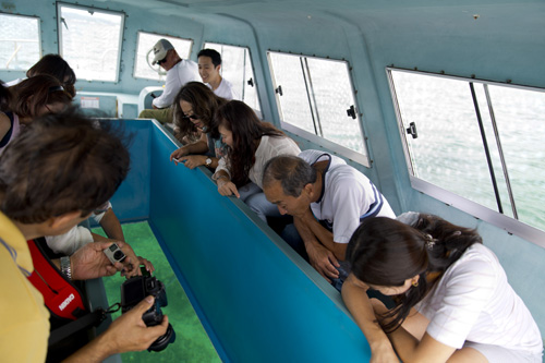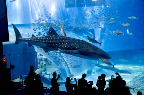 O Aquário Churaumi está localizado na Praia de Motobu, dentro de um complexo que inclui um bonito orquidário, tanque de golfinhos e tartarugas e o novíssimo hotel onde ficamos hospedados. Como estava tudo dentro do parque, nos despedimos da nossa guia Ai-san e da intérprete Helena Higa e fizemos os passeios utilizando o transporte do parque.
