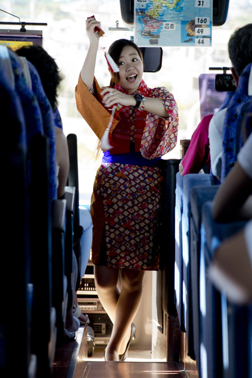 De lá seguimos para a sede da Cervejaria Orion e no caminho a nossa guia Ai-san apresentou uma outra dança típica (odori) no ônibus. Estava tão divertido que até esquecemos das lindas paisagens da costa oeste de Okinawa.