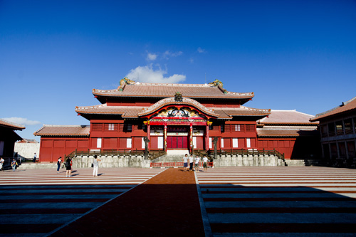 Do Okinawa World seguimos para o Castelo Shrui, que fica na capital Naha. Esse castelo foi totalmente destruído na Segunda Guerra Mundial, mas felizmente foi reconstruído nos mínimos detalhes. Logo na entrada está localizado uma espécie de oratório construído em 1519 chamado Sonohyan-utaki, que foi declarado patrimônio da humanidade pela Unesco em 2000 e de lá atravessamos os portões que guardam o maravilhoso castelo de Shuri.