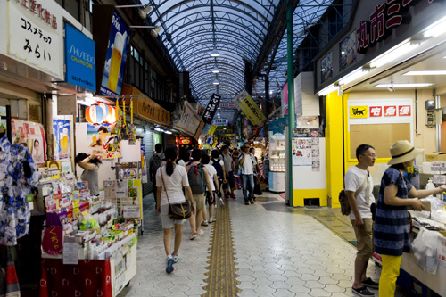 Apesar dessa história triste, os Uchinachus são muito alegres e calorosos. Logo que chegamos fomos recepcionados e levados ao nosso hotel que ficava no centro de Naha e como chegamos no começo da tarde, aproveitamos para caminhar pela principal rua chamada Kokusai Dori, cheia de lojas e restaurantes.