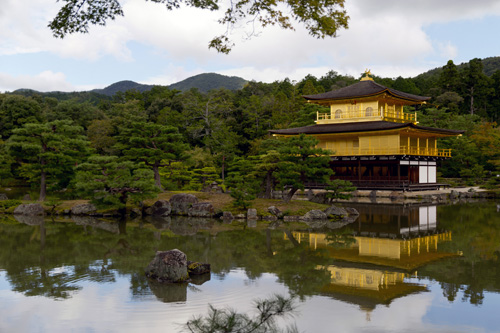 Começamos nosso passeio no dia 26/09/15 pelo Templo Zen Budista de Rokuon-ji (Templo do Jardim dos Veados), também conhecido como Kinkaku-ji (Templo do Pavilhão Dourado). Construído em 1397 pelo Shogun Ashikaga Yoshimitsu, esse maravilhoso templo é um dos cartões postais do Japão. O Shariden (Pavilhão Dourado), que tem as paredes do segundo e terceiro andares revestidas de ouro, teve que ser reconstruído duas vezes após ter sido incendiado durante a Guerra Onin (1467-1477) e por um monge em 1950.