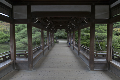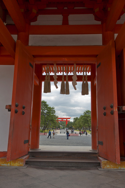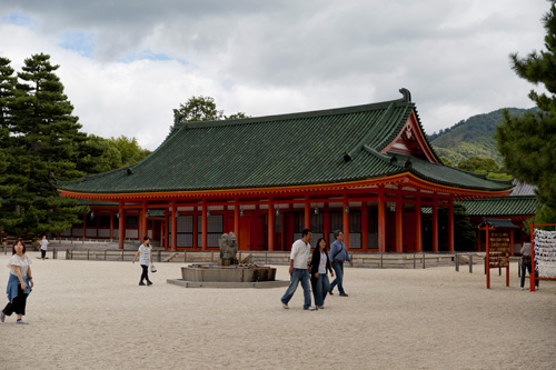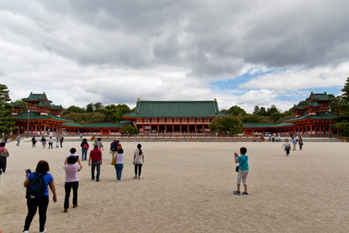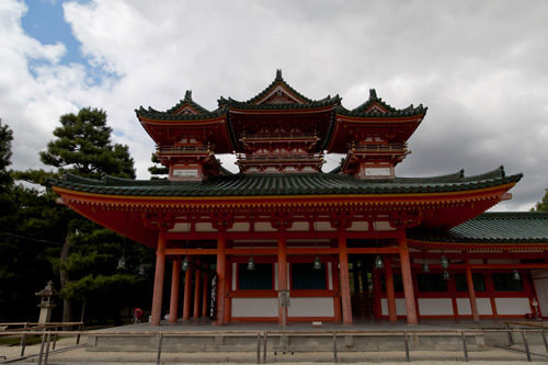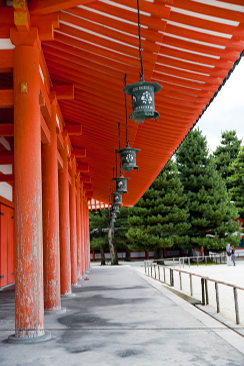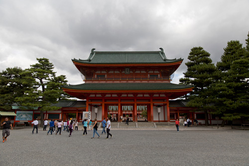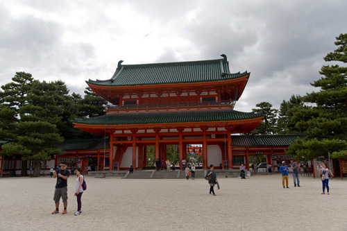 Seguindo o nosso passio pela histórica Kyoto, seguimos até o templo xintoísta de Heian (Heian Shrine). Esse templo foi construído em 1895 para o aniversário de 1100 anos da cidade e sua arquitetura é uma réplica em escala (5/8) do Palácio Heian de Heian-kyo (antigo nome de Kyoto). O destaque do templo é o bonito jardim localizado nos fundos do templo, onde passamos uma boa parte do nosso tempo.