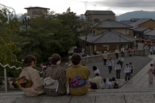 Após o almoço retornamos a Kyoto e paramos para caminhar pelo bairro histórico de Gion, famoso distrito das gueixas. Ao contrário do que Hollywood “ensina” em seus filmes, as gueixas não são prostitutas; são mulheres que desde muito cedo (entre 15 e 18 anos) se dedicam única e exclusivamente à arte e ao entretenimento (dança, canto, música e jogos).