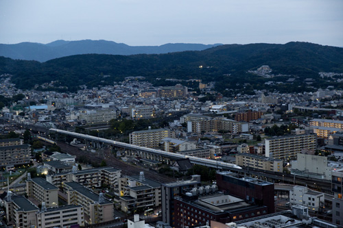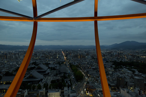 Voltando ao hotel saímos no começo da noite para caminhar pelas redondezas e subimos até o observatório da Torre de Kyoto. Apesar de não ser alta (100 metros) a vista lá de cima é muito bonita.
