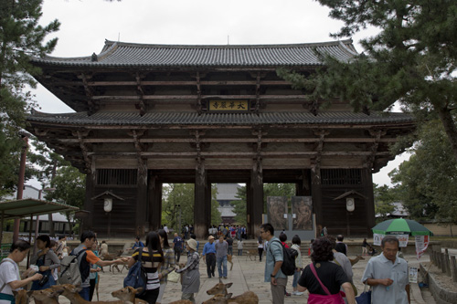 O primeiro local que visitamos foi o Templo Budista de Todai-ji, onde está localizada uma estátua de Buda feita em bronze com 15 metros de altura e 500 toneladas; o prédio construído em 743 para abrigar o enorme Buda de bronze é considerado uma das maiores estruturas de madeira do mundo e foi erguido por mais de 2.6 milhões de trabalhadores, segundo os registros da época; impressionante se considerarmos que o Japão tinha aproximadamente 5 milhões de habitantes nessa época.