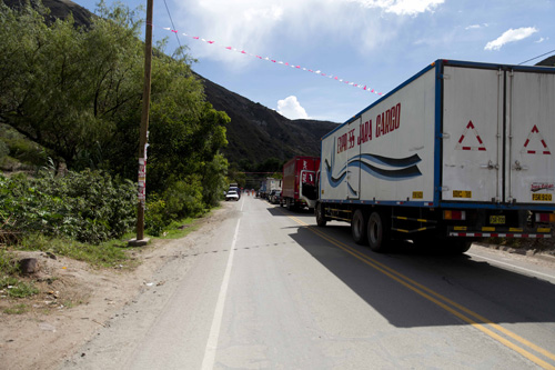 Ainda na fronteira, em Tacna, pudemos ver o que nos aguardava… tuc-tucs (moto-taxis), carros, ônibus, vans e motos para todos os lados e sempre buzinando; em Arequipa entendemos que cada um faz o que quiser no trânsito; em Juliaca ficamos perdidos no centro da cidade que não tem qualquer sinalização (seja o nome da rua ou a mão e contramão) no meio de um tumulto que só não era maior do que o lixo espalhado pelas ruas; em Lima ficamos mais de 1 hora e meia presos no engarrafamento monstruoso para sair da cidade ouvindo uma verdadeira sinfonia de buzinas; mas o ápice foi no dia 13/12 em Trujillo, onde ficamos parados quase 3 horas no acesso à cidade.