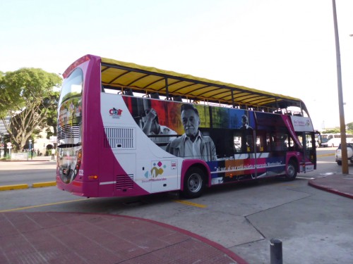 No nosso caso, pudemos escolher entre ouvir as informações em espanhol (óbvio), inglês ou português, mas a tradução do espanhol para o português era MUITO ruim – no estilo “dá-me una cueca-cuela por favor”. Também ficamos longos trechos apenas com música, sem qualquer informação. O tempo poderia ser melhor aproveitado para dar informações sobre a cidade, sua população ou qualquer outra coisa, mas não. Assim, avaliamos esse passeio como ruim – talvez seja melhor contratar um city tour privado.